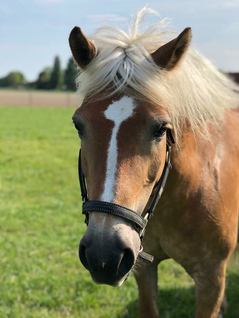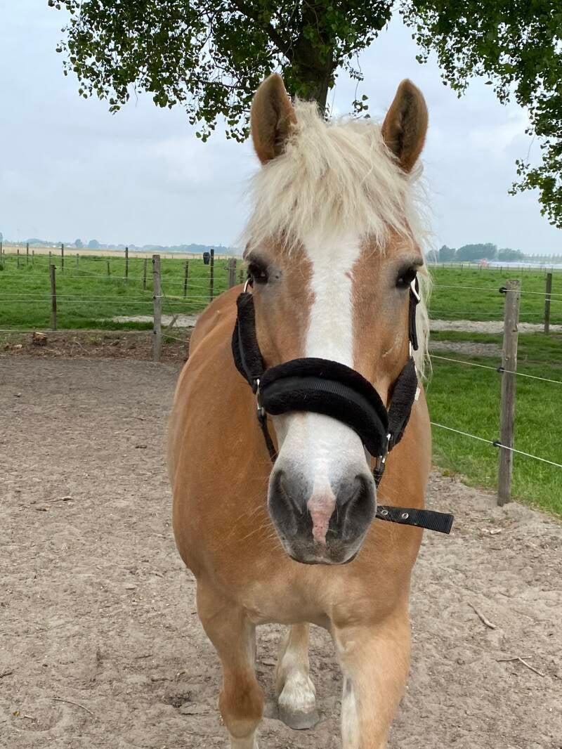 Een Haflinger merrie, geboren in 2002. Een plaatje om te zien. Nog vol energie.