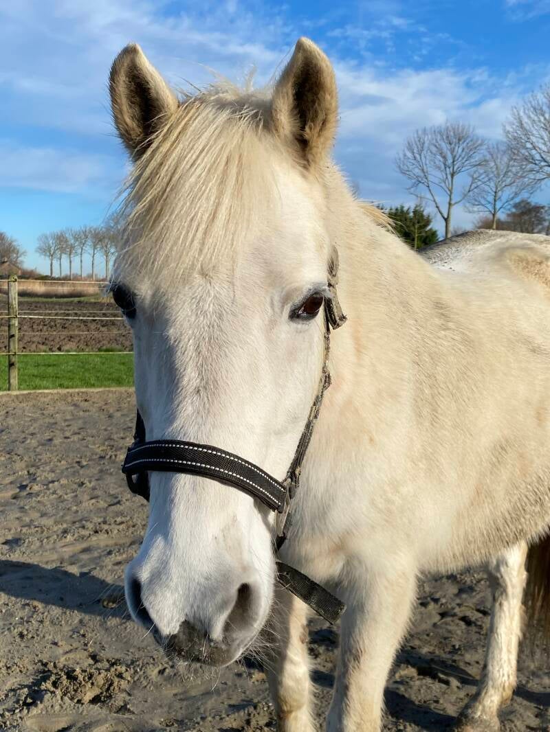 Hij is een stoere Welsh Cob kruising uit 2012 met een hartje van goud. Hij heeft de eerste 9 jaar van zijn leven in Engeland gewoond en is sinds april 2021 bij ons. We weten niet veel over zijn verleden. We kochten hem met luchtwegproblemen en angst voor het zadel, maar hij is flink aan het opknappen. Het is een ontzettende lieverd en dikke vrienden met Rigolo en Pardoes.